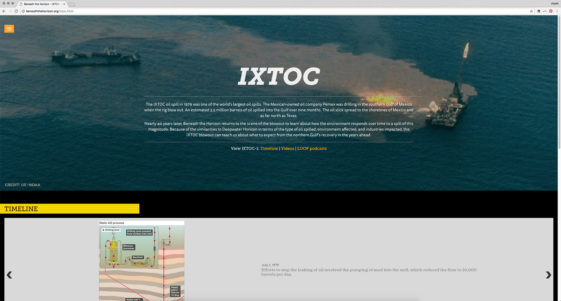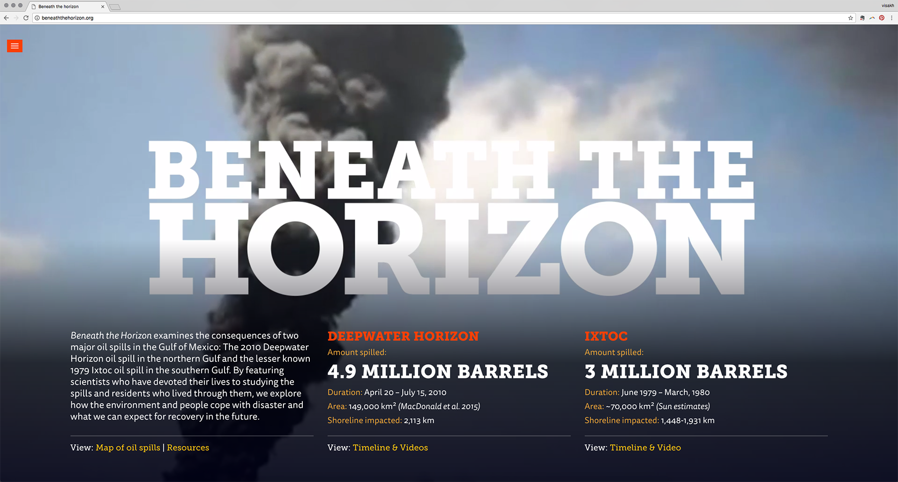 Beneath the Horizon examines the consequences of two major oil spills in the Gulf of Mexico: The 2010 Deepwater Horizon oil spill in the northern Gulf and the lesser known 1979 Ixtoc oil spill in the southern Gulf. By featuring scientists who have devoted their lives to studying the spills and residents who lived through them, we explore how the environment and people cope with disaster and what we can expect for recovery in the future.